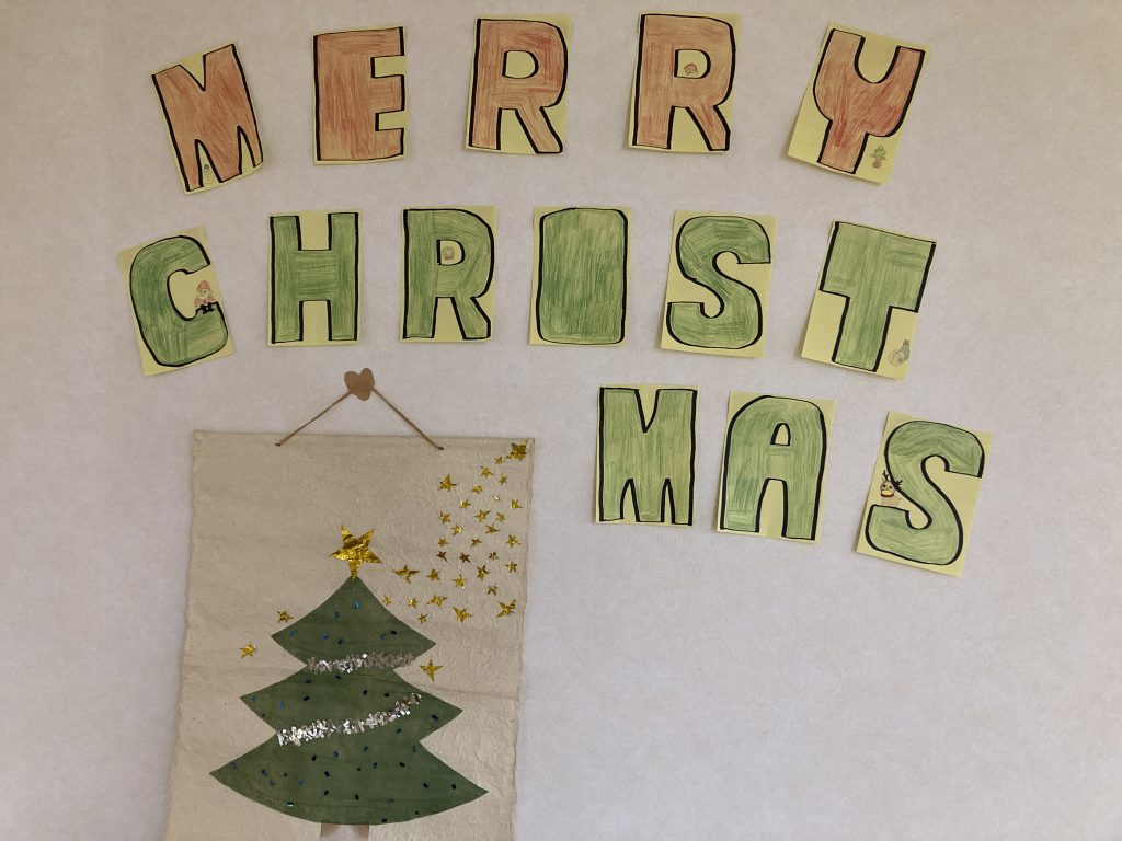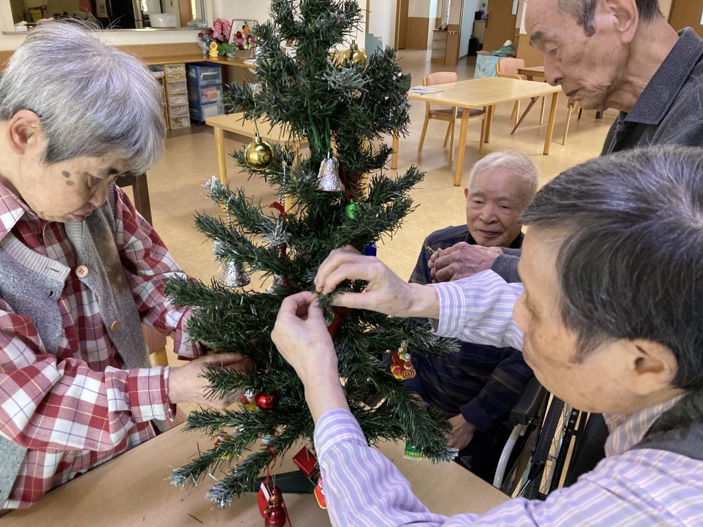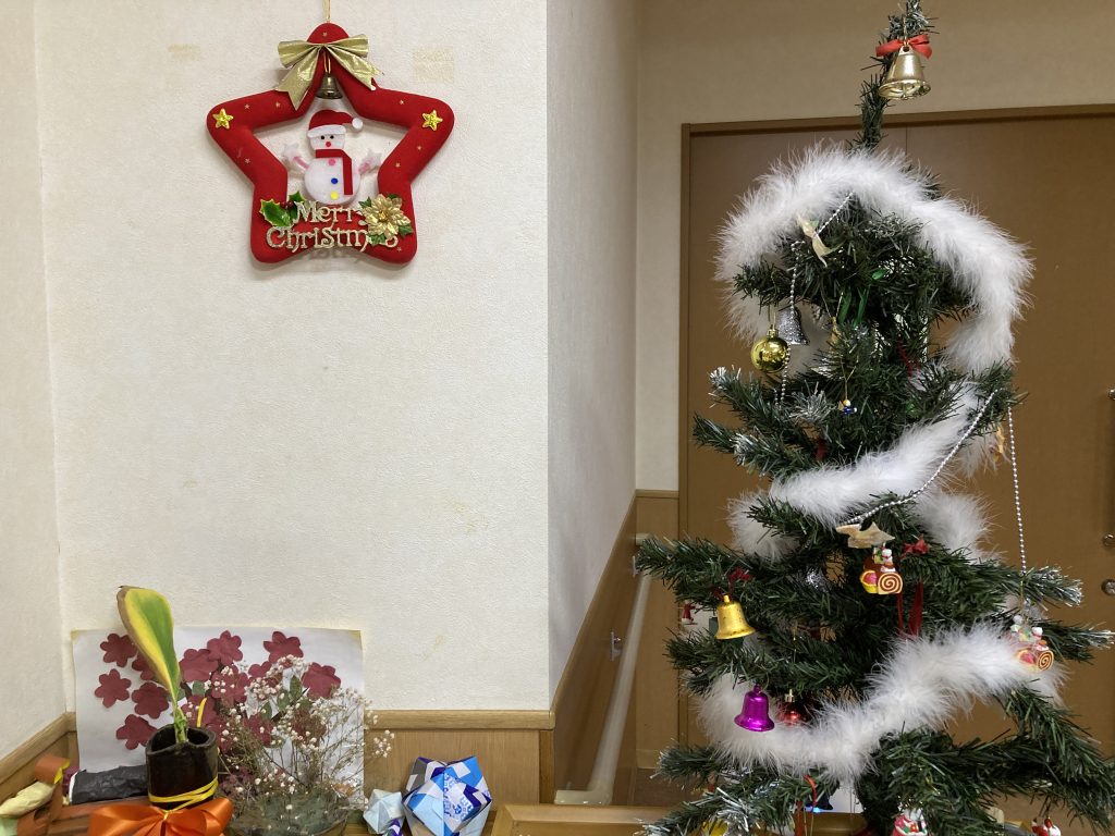 紅葉作りが完成して間もないですが、あと数日で12月‼今年もあと約1ヶ月(;’∀’)年末のイベントと言えばクリスマスですよね‼みなさんにツリーの飾り付けを手伝って頂きました(^^♪
