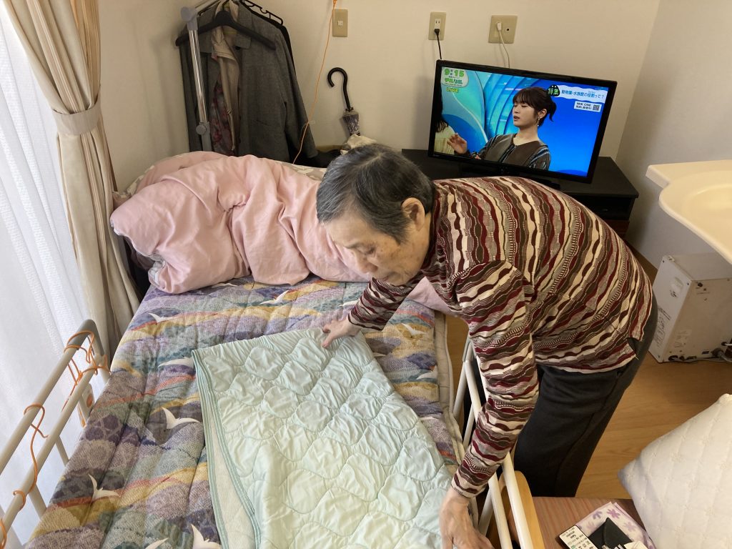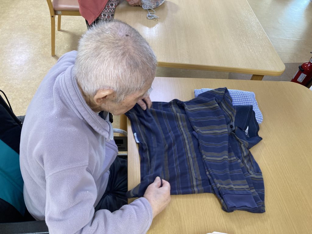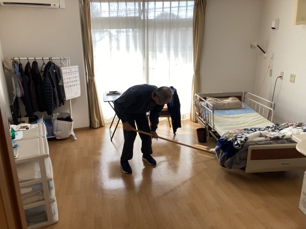 毎日の洗濯物たたみや、床のモップがけ、リネン交換など、安全に行える様にスタッフが配慮しながら、1日でも長く、ご自分で出来る事を継続できる様に支援させて頂いてます‼