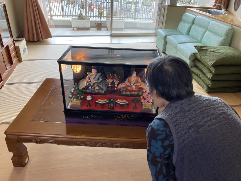 週間予報では、最高気温が20℃になる日があるそうです!春がそこまで来ていますね♪ちょっと早いですが、グループホームのリビングにお雛様を飾りました‼Sさんは、飾ってあるお雛様をみて「私も子供が小さい頃、飾ったわよ~」と懐かしんでいました(^^♪