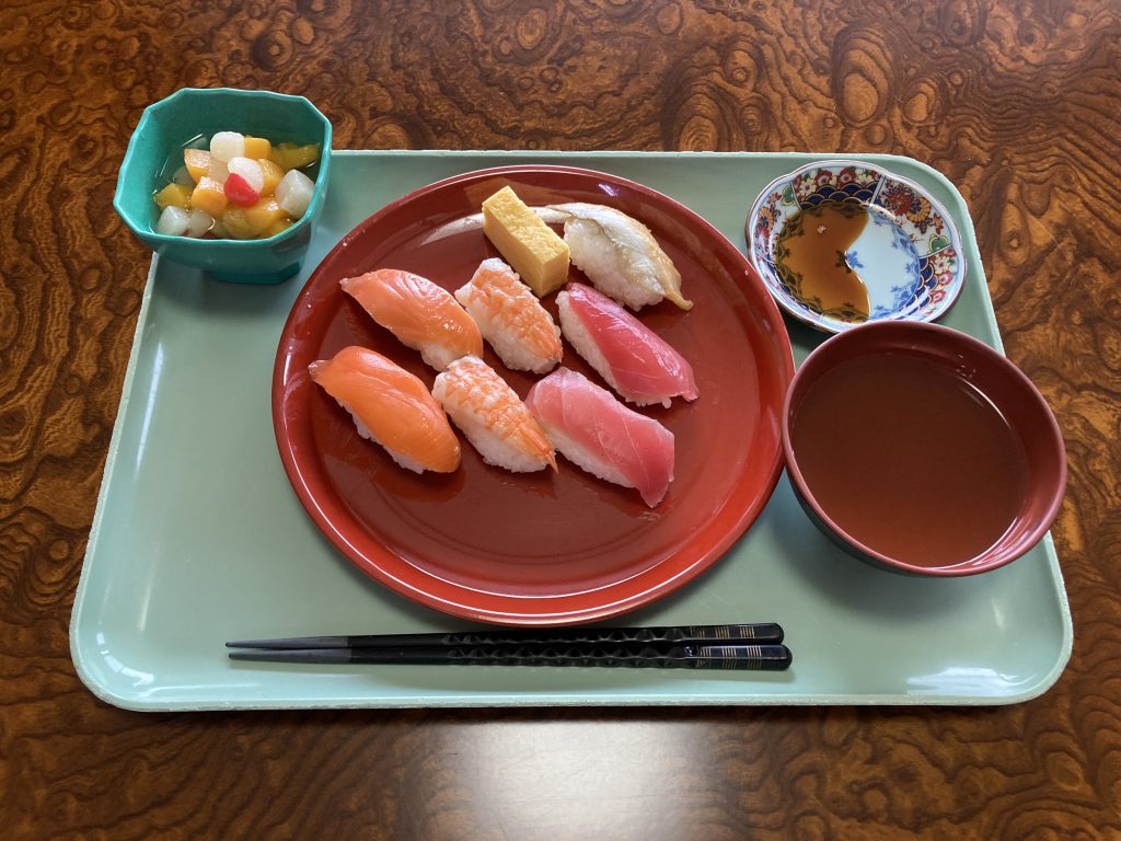 先日の昼食は、入居者の方達が大好きなお寿司🍣でした!好きなネタから食べる方、好きなネタは最後に食べる方と、楽しみながら召し上がって頂けました(^^♪
