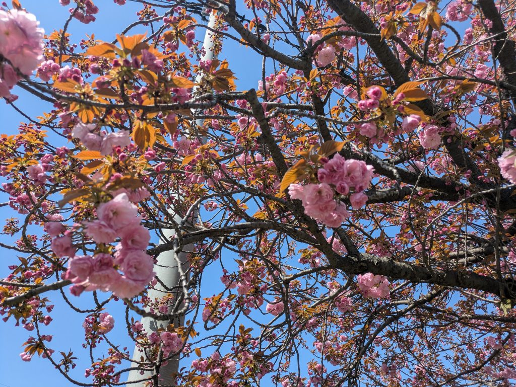 今日の武蔵村山市の最高気温27℃の予報が出てます(;’∀’)午前中の涼しい時間に、お散歩に出かけました~道中では、ちょうど見頃を迎えた八重桜がふんわりと咲き誇り、「きれいだね」「春を感じるね」と自然と会話も弾みます。