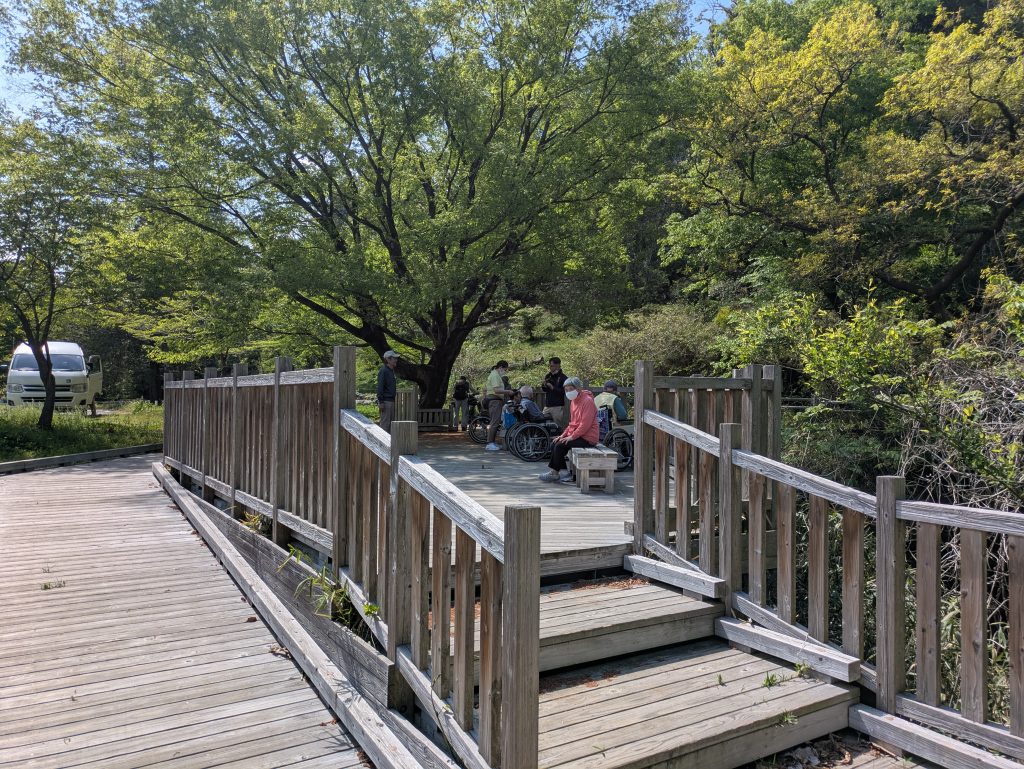 本日は晴天のもと、外出行事として里山コースの散策に出かけました。やさしい春の日差しと新緑の心地よさに包まれながら、のんびりとした時間を過ごしていただきました。青々とした景色の中、皆さまの表情も自然とほころんでいました。
