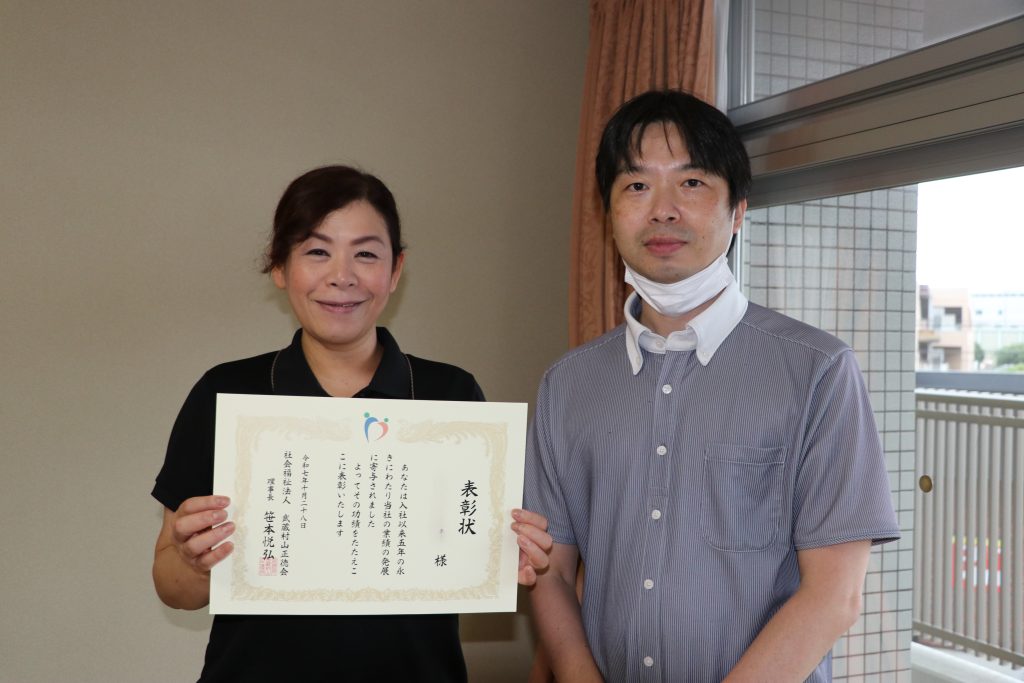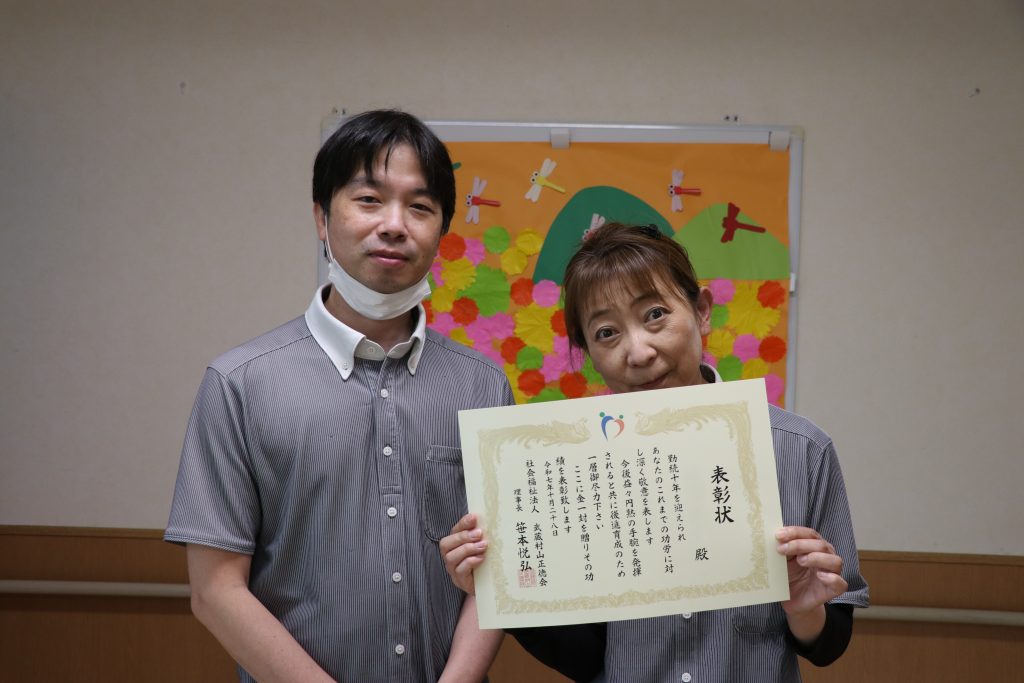 2025年度、社会福祉法人武蔵村山正徳会の職員として勤続20年5名、勤続15年7名、勤続10年6名、勤続5年2名と今年度も多くの受賞者がいます。改めて、これまで法人発展にご尽力いただき誠に感謝申し上げます。