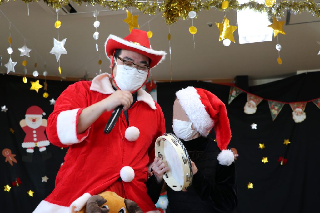 「クリスマスカラオケ大会」利用者様に職員が付添い職員と一緒に楽しみながら歌を歌って頂きました。🎙~♫