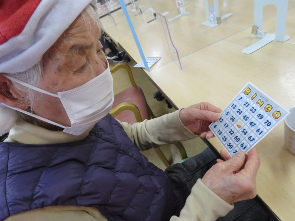 「ビンゴ!!」上位2名の方に賞品を授与。利用者様全員にもクリスマスプレゼントをお渡し致しました。あっという間に時間が過ぎ皆さんの楽しまれる姿が沢山見られたクリスマス会でした。