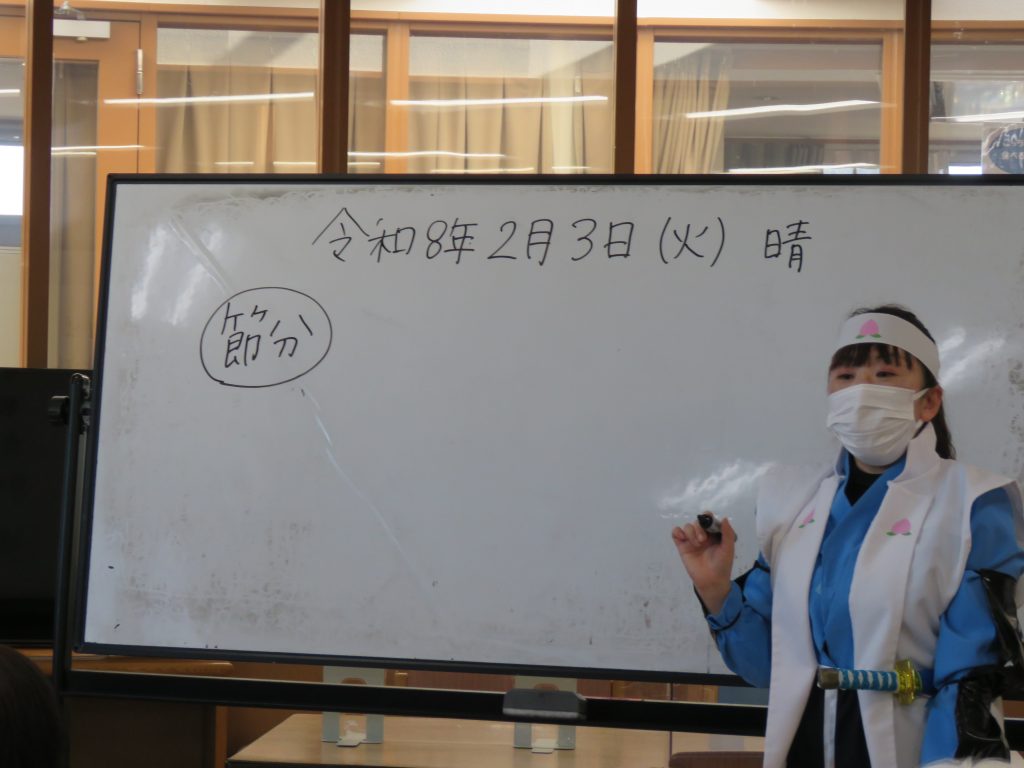 脳トレクラブに「桃太郎」さんが登場、節分に関する問題を皆さんと一緒に考え脳トレクラブを進行。