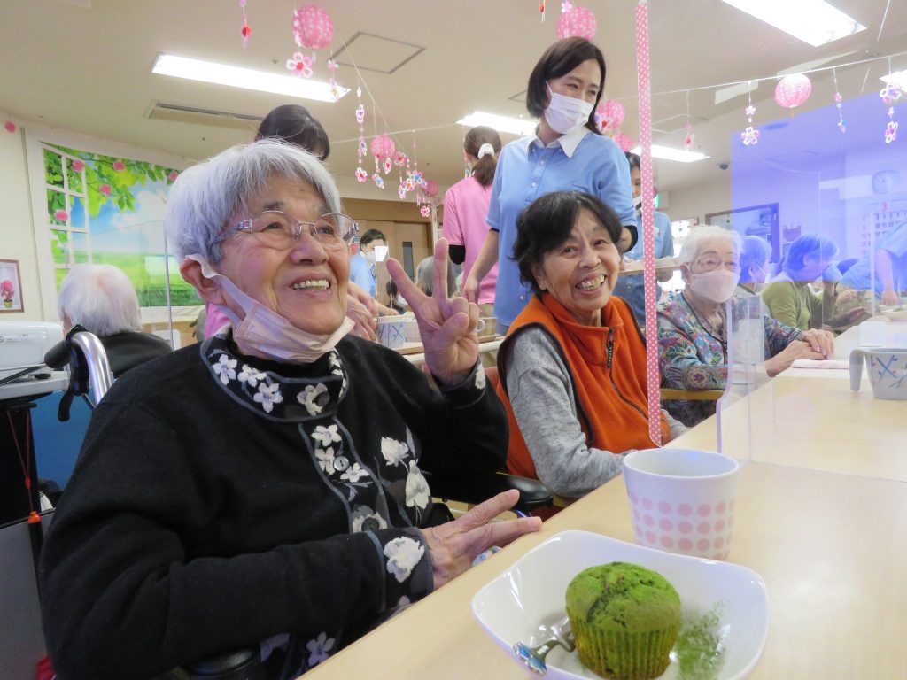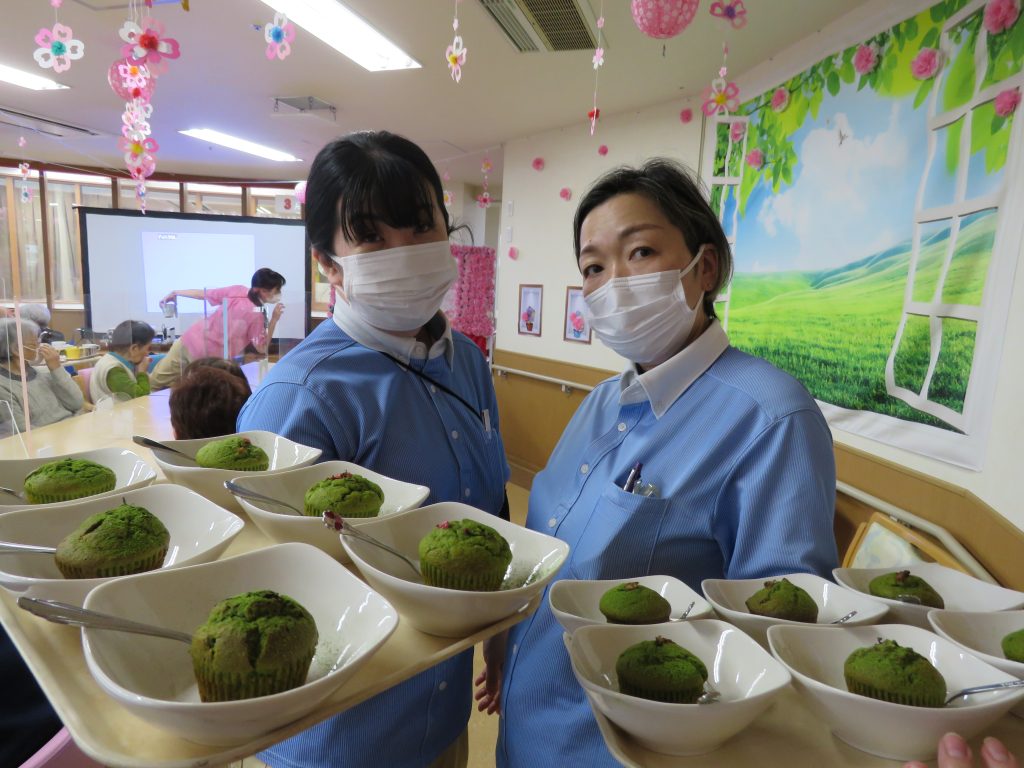 体を動かした後は「お茶の時間」手作りの桜抹茶マフィンを召し上がれ。