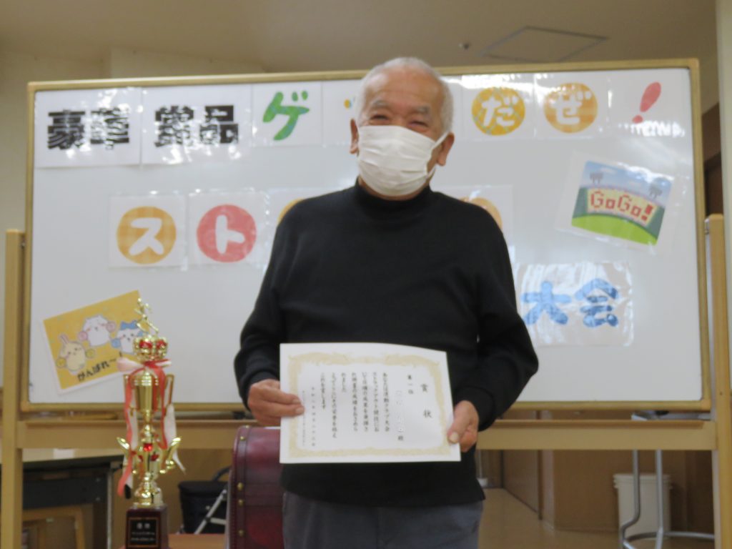 毎月恒例の運動クラブ主催「ストラックアウト大会」を行いました。皆さん日頃の成果を発揮して頂き上位2名目指して頑張って頂きました。参加された方には「レトルトパック釜めし」か「たい焼き」をそれぞれの方にプレゼント。皆さん楽しく元気に参加して頂きました。